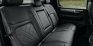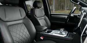 • Обивка салона из экокожи черного цвета с красной прострочкой