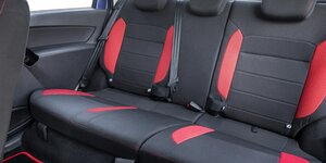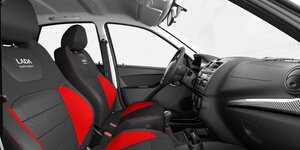 • Обивка сидений тканью черного цвета с красными элементами